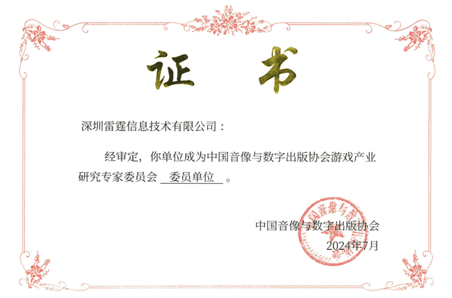 2024年7月25日,,中国音像与数字出版协会游戏产业研究专家委员会(以下简称“中国音数协游戏专委会”)成立大会在上海市召开,,,,厦门1win网络技术股份有限公司及其子公司深圳雷霆信息技术有限公司(以下统称“公司”)正式成为中国音数协游戏专委会委员单位。。